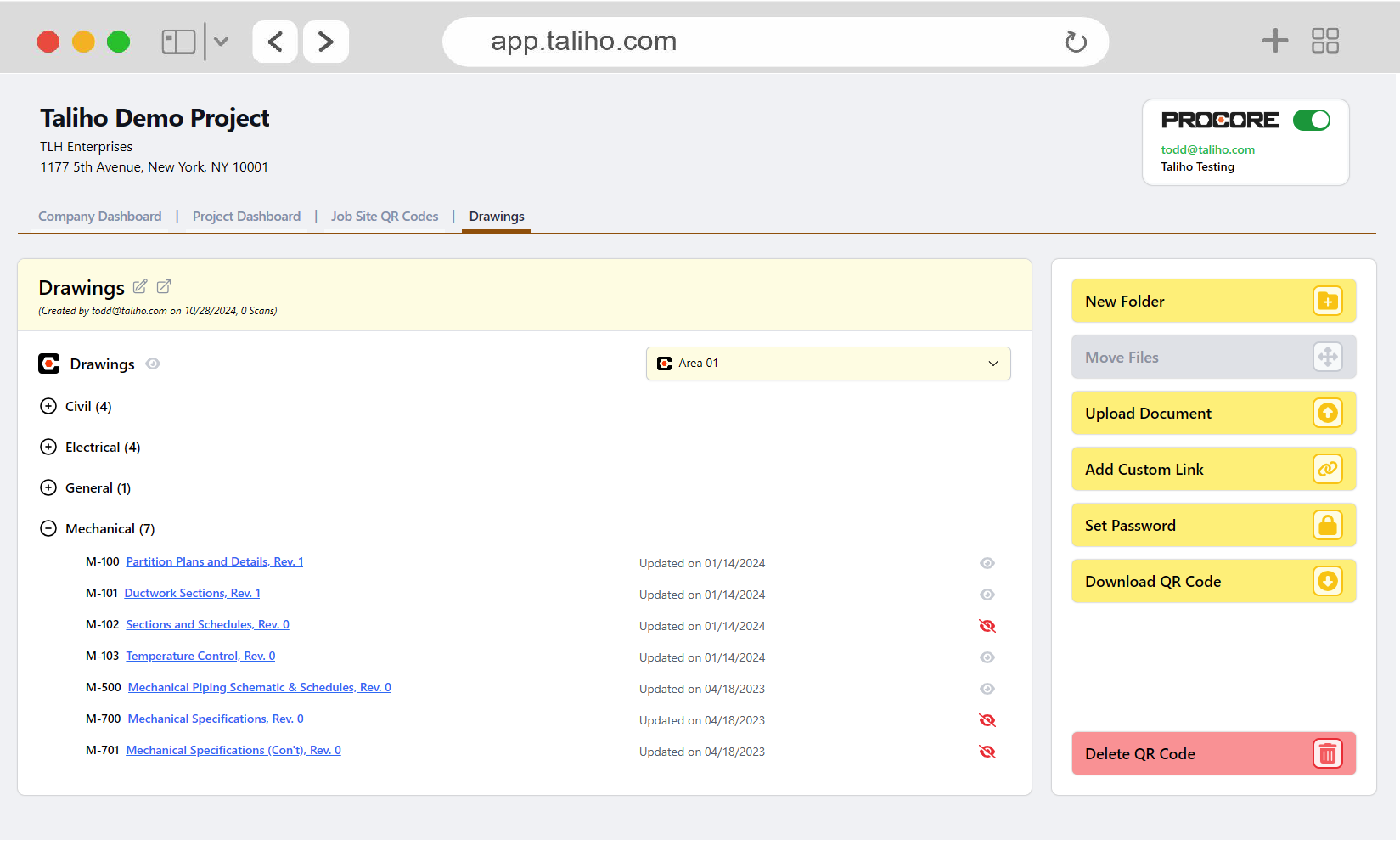 Because they’re not just looking for Drawings. They also need Submittals, RFI’s, Wiring Diagrams, Punch Lists, and more. Taliho QR Arrangements provide a simple solution for instantly distributing all of this untapped project information – via our patented system of smart, organized QR Codes.